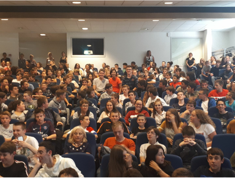 Ici 300 jeunes de la 3° à la 1°, à bloc ! (cherchez le Crapaud dans la salle ;-)) :